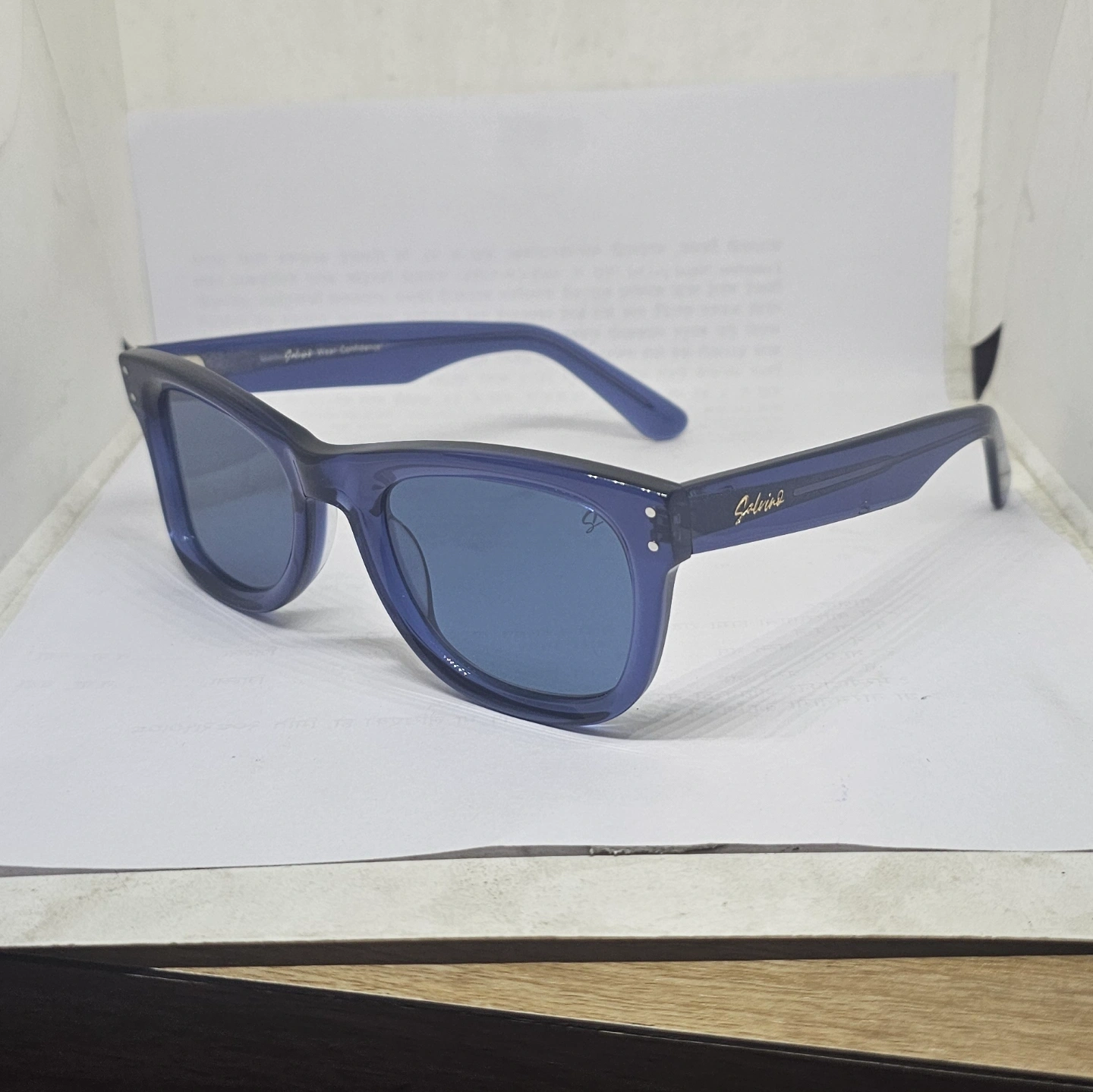 Refresh your everyday look with these timeless square frames in a striking monochromatic blue. Crafted from a premium translucent navy-blue acetate, these sunglasses offer a modern twist on a familiar, classic silhouette. The matching blue-tinted lenses provide seamless style and essential glare reduction, while the dual silver pin rivets on the front corners add a subtle touch of vintage-inspired refinement. Versatile enough for daily wear yet bold enough to elevate any outfit, these shades are a must-have staple.