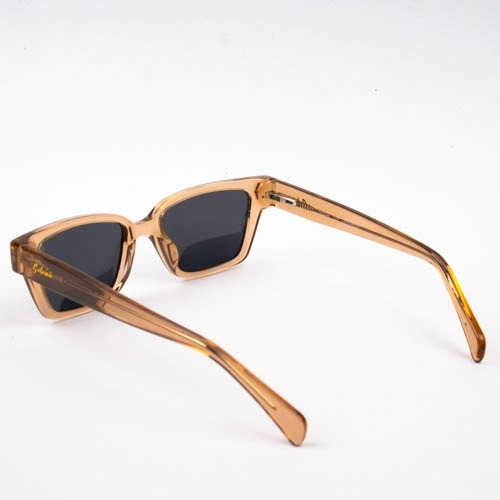 Warm hues meet striking details. These elegant rectangular frames are crafted from a beautiful translucent caramel acetate, offering a rich, modern touch to your everyday eyewear. The dark lenses provide a sharp, chic contrast while ensuring essential UV protection and glare reduction. Finished with standout silver chevron hardware on the front corners, these shades add a touch of architectural edge to a universally flattering silhouette.