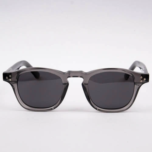 Upgrade your daily rotation with these sleek, structurally refined frames. Crafted from premium translucent charcoal-grey acetate, these sunglasses offer a modern, smoky twist on a classic rectangular silhouette. The vintage-inspired keyhole bridge provides a universally comfortable fit, while the dark-tinted lenses deliver essential UV protection and superior glare reduction. Finished with signature triple-dot silver hardware on the front corners, these shades perfectly balance retro charm with a contemporary, understated edge.