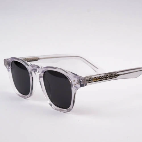 Details: Premium translucent acetate showcasing a visible inner wire core, finished with signature triple-dot silver accents.