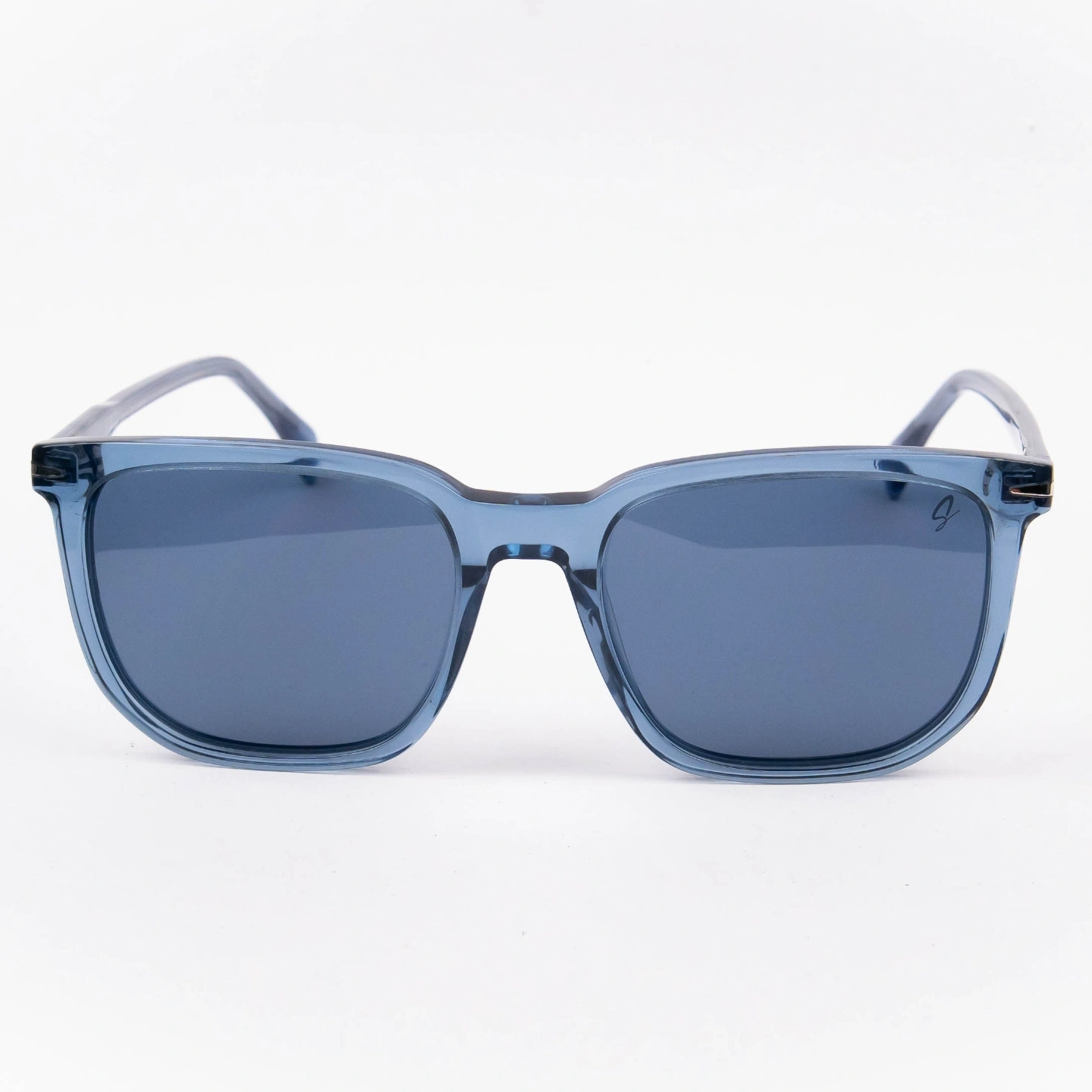Keep it cool and contemporary with these translucent blue square sunglasses. Crafted from high-quality, lightweight acetate in a unique slate-blue hue, these frames offer a refreshing, modern update to a universally flattering rectangular silhouette. The dark-tinted lenses provide excellent UV protection and everyday glare reduction while perfectly complementing the cool-toned frame. Featuring a comfortable saddle bridge and subtle lens branding, these versatile shades are an effortless everyday staple built for all-day wear.